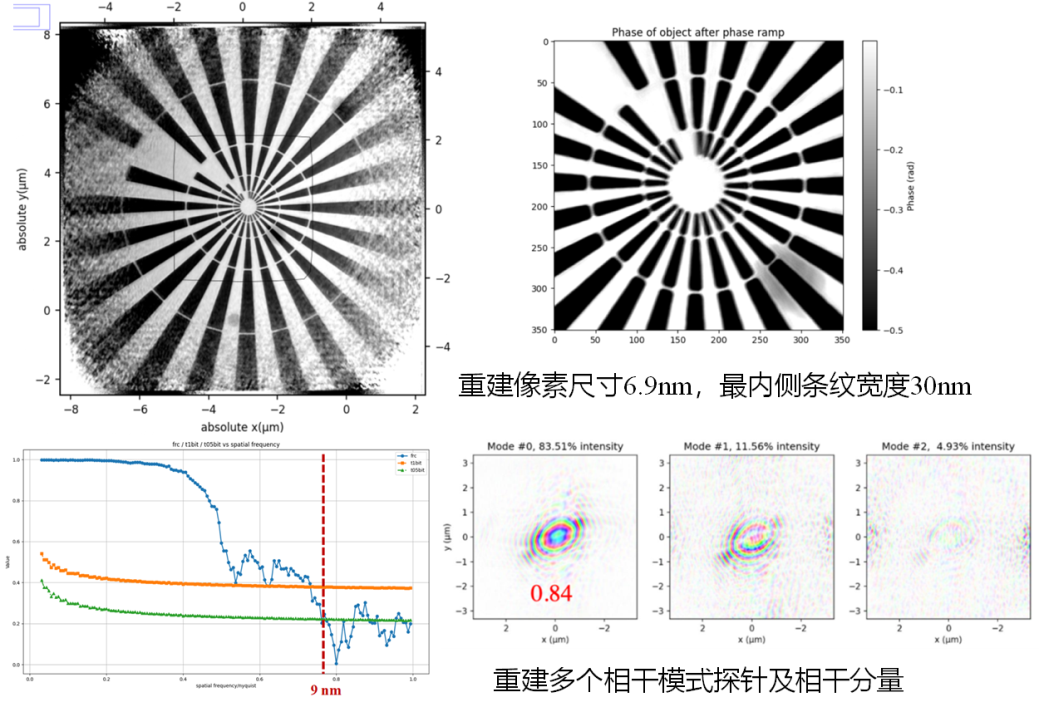 Ptychography实现优于10nm成像分辨率成像;样品处获得高相干的X射线,相干分量>80%,相干通量1011phs/s。
