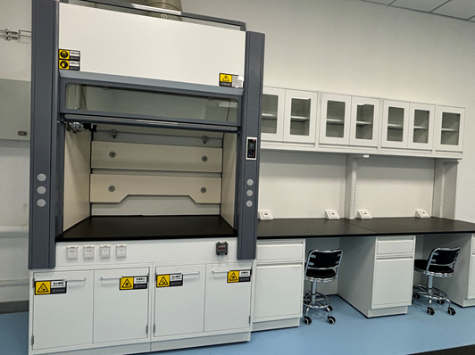 原位辅助实验室位于外圈内侧实验室19-108和03-124,用于空气环境下的原位设备调试和存储,包括调试平台、存储货架、电焊桌,真空干燥箱和通风橱等。外圈内侧实验室03-124中的一部分为万级洁净间,面积约十平米,可进行有洁净需求的操作。另外一部分进行简单的样品制备,配备了试剂柜,气瓶柜,通风橱等,为HEPS的原位实验提供支撑服务。