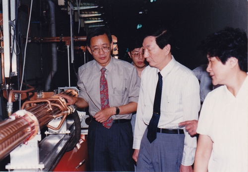 1994年9月16日,胡锦涛同志视察北京正负电子对撞机。