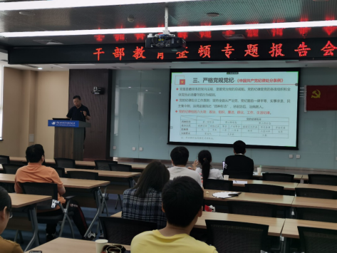 2023年6月25日,粒子天体中心党总支召开党员大会,进行专题学习。科研计划处处长徐殿斗,粒子天体中心宋黎明代表所纪委作主题教育报告。除党员外,天体中心非党员职工也参加了本次学习活动。