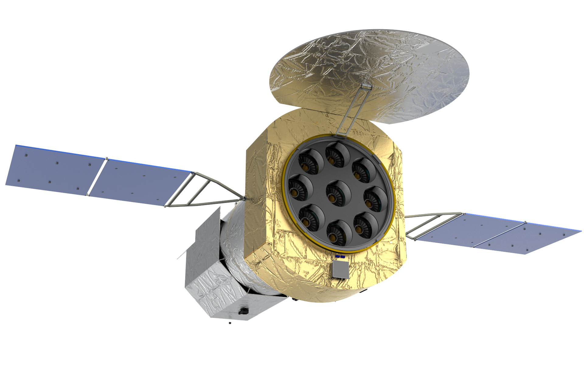 a set of 6 X-ray optics operating in the 0.5-10 keV energy band with a focal length of 5.25 m and field-of-view (FoV) of 16 arcmin each and a total effective area of ∼4900cm² and 3400cm² at 1.5 keV and 6 keV, respectively. The telescopes are each equipped with Silicon Drift Detectors offering ~150 eV spectral resolution.