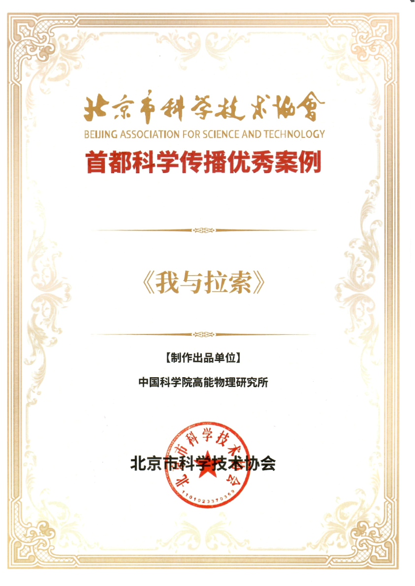 2024年12月26日,2024年“首都科学传播优秀案例”在北京科技记者编辑协会年会上发布,《我与拉索》系列视频入选。