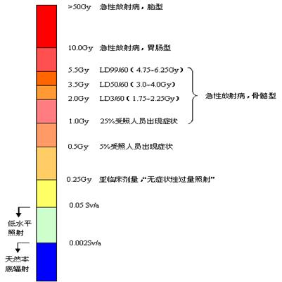 辐射对人的效应有两个显著的特点:很低的吸收能量可以造成很严重的伤害;短时间的作用可以造成非常长久的影响。