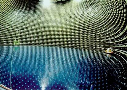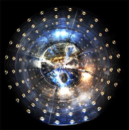 日本神冈Super-Kamiokande探测器20英寸光电倍增管阵列(11200个光电倍增管组成),1998年间接验证了中微子振荡效应,东京大学小柴昌俊教授2002年获诺贝尔物理学奖(图片来自网络)