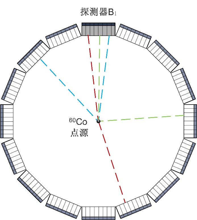 图 60Co时间校正示意图,可采集任一探测器与其他所有探测器的符合数据