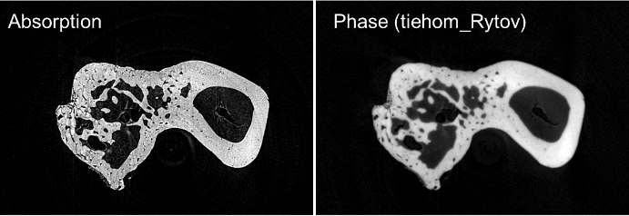 l 可实现单距离和多距离两种采集模式下的同轴相位成像的相位恢复,主要算法包括:tie、ctf、tiehom_Rytov、tiehom_Paganin、hioer等;测试结果显示其1022张投影数据的相位恢复仅需3分钟;