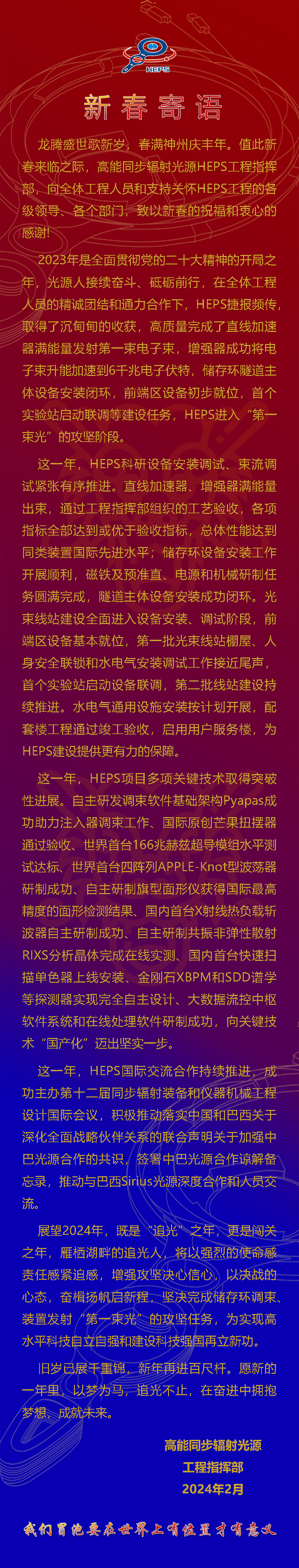 高能同步辐射光源新春寄语