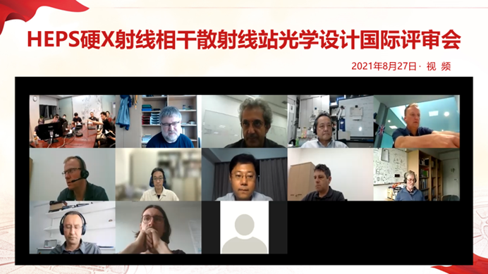 硬X射线相干散射线站光学设计国际评审会合影。专家来自亚、欧、美三大洲,为最大限度地便于专家参会,讨论安排在北京时间19:30开始到22:40左右结束。