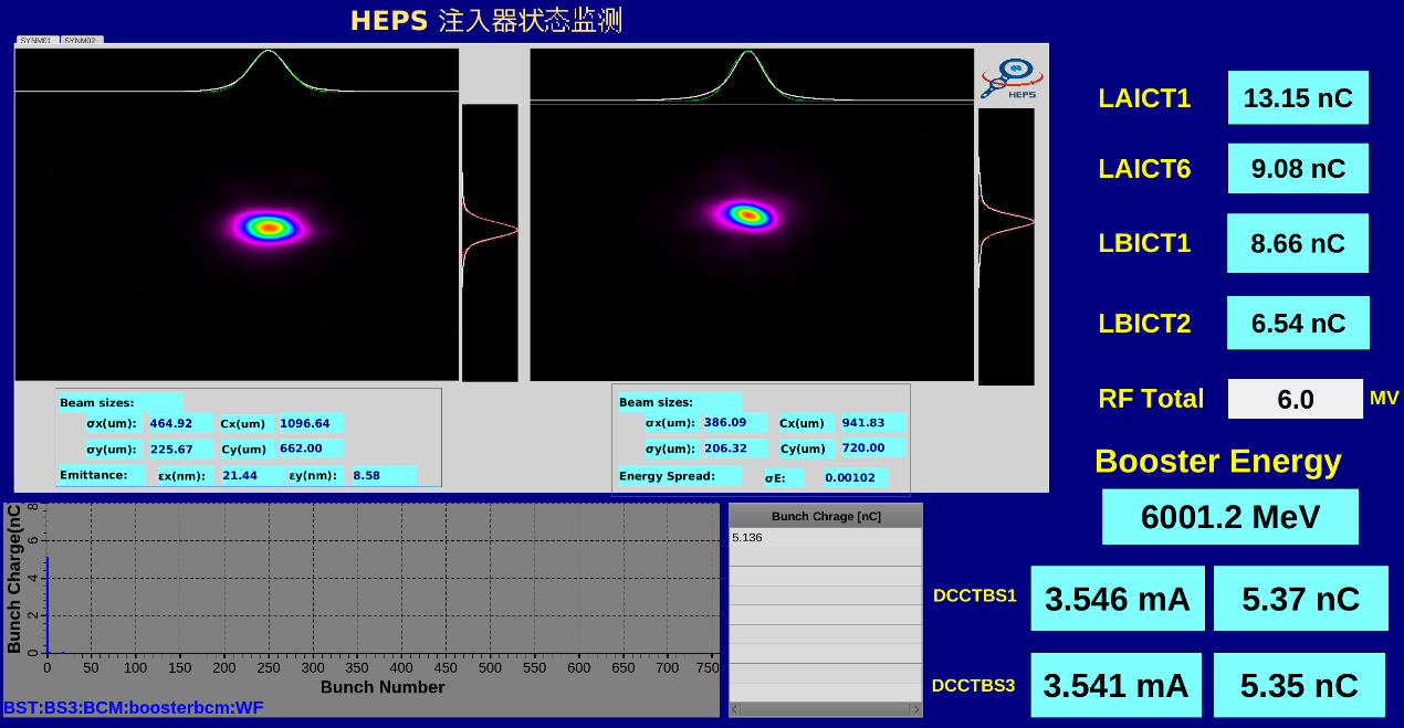 HEPS工程总指挥潘卫民表示,增强器涉及磁铁、电源、真空、注入引出、高频、束测等多个系统,安装过程中,各系统密切配合,紧密衔接,为增强器系统联调、束流调试打下了良好的基础。经过多轮联合调试和无束流运行后,增强器束流调试工作于7月25日正式启动,8月9日,增强器成功将束流升能至6GeV。通过增加高频腔压,对6GeV的能量进行优化,在这个能量下对发射度、能散及电荷量精细测量,最后取得了达到和超过设计指标的测试结果。