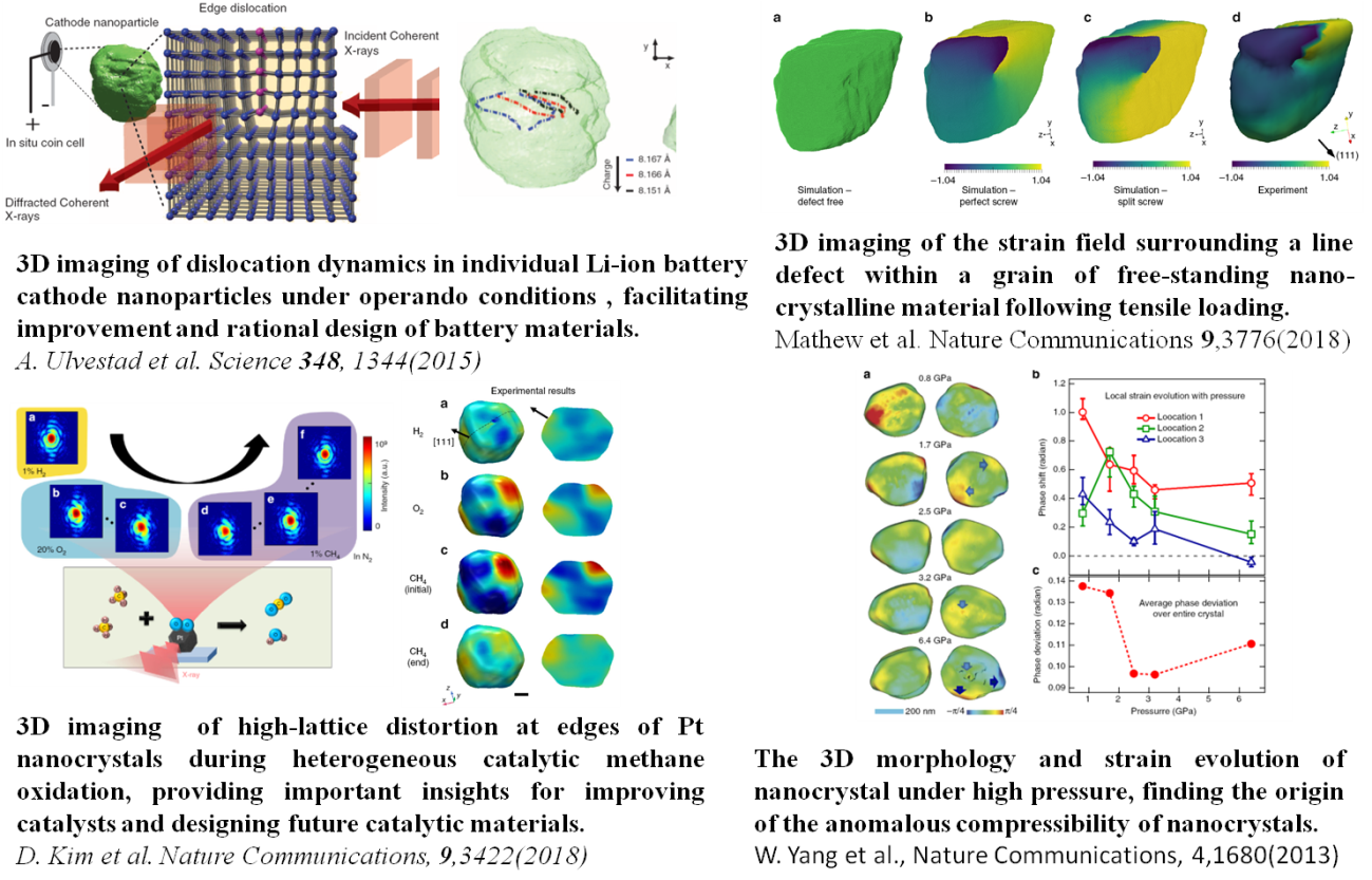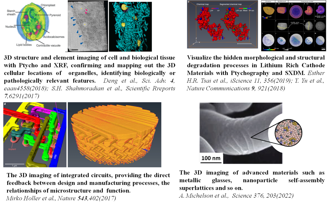CXDI:包括扫描CXDI(Ptychography)和Bragg CXDI(BCDI) ,分别用于纳米分辨率3D结构和应变成像,同时ptychography可以与XRF/XAFS等结合实现3D元素/价态成像。