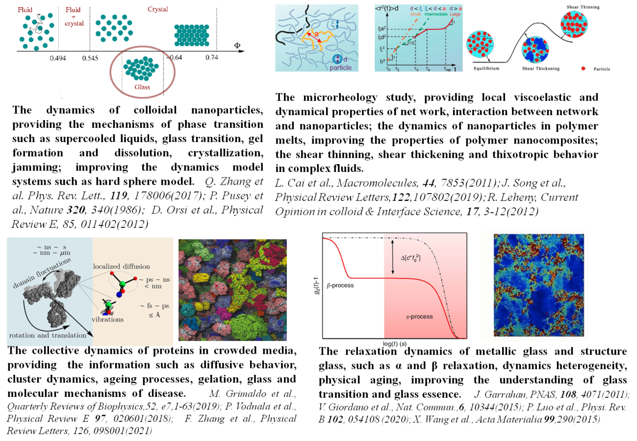 XPCS:包括SAXS和WAXS两种几何模式,能够得到系统的动力学函数,例如中间散射函数等,用于凝聚态物质的平衡态动力学、非平衡态动力学以及动力学异质性的测量,长度尺度约500nm-0.1nm,时间尺度约1000s-20μs.