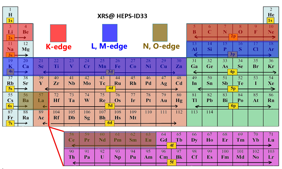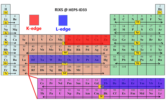 HEPS-ID33 共振非弹性X射线散射可测量的元素及其对应吸收边