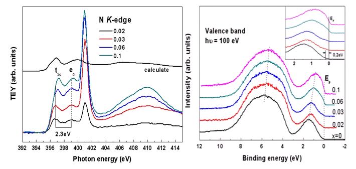 利用北京同步辐射装置4B9B-光电子能谱实验站,该研究小组首次实现了VO2薄膜的原位N原子掺杂,掺杂浓度范围为0~0.13N掺杂VO2薄膜电子结构的近边吸收精细结构(XANES)和同步辐射光电子能谱表征表明掺杂的N原子位于晶格O原子取代位。掺杂N原子注入空穴填充到VO2 d 子带,引起V-V原子对相互作用的减弱和M1相能隙的降低。这两个方面电子结构的改变一致促进了VO2相变温度的降低。这个工作不仅明确了电子相关效应在VO2相变机制中的重要作用,也显示出同步辐射近边吸收精细结构和光电子能谱两种实验技术相结合在揭示低维材料电子结构和半导体物理研究方面是一种强有力而且独特的工具。该研究工作成果已经在美国化学会J. Phys. Chem. C 杂志(20145月份)发表。