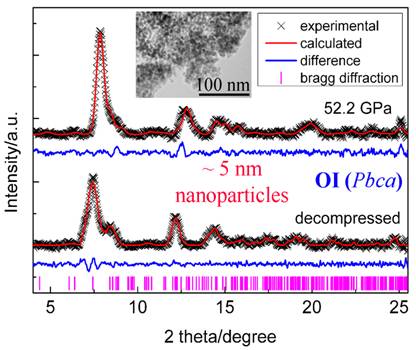 ZrO2是一种具有优异机械性能的高硬度材料,在电子、航空航天、医疗器械等领域有着广泛的应用。常规条件下,ZrO2以单斜结构(MI相)存在,高压下则具两种正交结构(OIOII相)。这些高压相具有更低的可压缩性,是潜在的新型高硬度材料。然而,理论预测具有更优异力学性能的OI相,是难以保持至常压条件下的。如何获得常压下稳定的OIZrO2仍是一项具有挑战性的课题。吉林大学超硬材料国家重点实验室的一个研究组结合纳米尺寸效应和高压手段成功制备出常压条件下稳定的OI相结构ZrO2纳米颗粒。相关的研究成果发表在2016年的《Nanoscale》上。