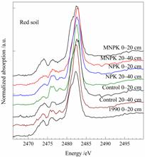 硫(S)是土壤中继氮、磷、钾之后位居第四重要的植物必需的营养元素。在土壤中硫以多种价态、多种形态同时存在,并易受环境氧化还原电位及土壤前处理方式影响其赋存形态和有效性。利用同步辐射X-射线吸收近边结构(S K-XANES)光谱技术可以直接分析新鲜土壤样品、原位表征硫素在土壤中的真实赋存形态,避免前处理方式以及化学提取过程中对硫素赋存形态和分布可能带来的干扰。通过应用XANES光谱结合化学分级提取技术,中国科学院生态环境研究中心环境化学与生态毒理国家重点实验室的一个研究组深入研究了硫素在长期施肥土壤中的形态分布和转化特征,为解析硫素在土壤中的赋存形态及转化过程提供了直接的证据。相关研究成与20165月发表在《European Journal of Soil Science》上。