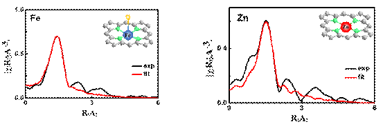 利用北京同步辐射装置(BSRF)X射线吸收谱技术获得该催化剂的结构特征,近边X射线吸收精细结构的结果显示,铁和锌分别以单原子的形式与氮配位,形成类卟啉的氧还原活性位点。而拓展边X射线吸收精细结构结果显示Fe-N4/Fe-O和Zn-N4模型存在。该催化剂铁含量为1.2 wt.%,锌含量为 1.7 wt.%,两种金属高度分散在氮硫共掺的多孔碳中。