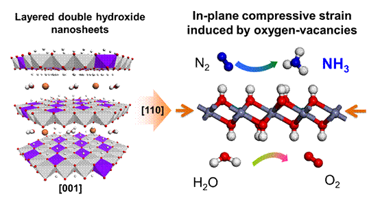 图1. LDH超薄纳米片光催化合成氨示意图