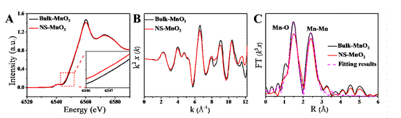 图4. 利用北京同步辐射装置(BSRF)X射线吸收谱技术证明超薄δ-MnO2纳米片中氧空位的存在。