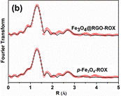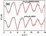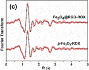 利用北京同步辐射装置(BSRF)X射线吸收谱技术获得的吸附后ROX中As的K边EXAFS数据。第二壳层的As在其周围3.30埃(Fe3O4@RGO)和3.35埃(p-Fe3O4)的距离内围绕着配位的Fe原子,两种材料张的As-Fe原子间距均复合As-Fe双齿双核内球配位模型。Fe3O4@RGO的As-Fe配位数为1.7,大于p-Fe3O4的配位数,说明其受外球作用的影响比p-Fe3O4小。同时,Fe3O4@RGO吸附ROX后的As-Fe间距比p-Fe3O4略短,说明与石墨烯复合缩短了Fe3O4与ROX的As-Fe原子间距。因此,EXAFS数据表明,Fe3O4与三维石墨烯的复合有利于As-Fe内球配位的形成,同时使其中As与Fe原子间作用力的强度有所增加。