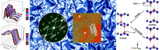 该课题组制备了同时兼具高能量密度和高功率密度的氢氧化钴薄膜电极,且电化学和力学性能十分稳定,经过15000次充放电循环后比电容仅下降了8%。这种电极材料为未来超级电容器和电池的融合提供了良好的契机。而深刻地理解氢氧化钴的充电机制则是混合储能器件发展的关键。氢氧化钴属于六方结构,普遍认为氢氧化钴具有高性能的原因是其片层结构利于电解液离子的迁移。