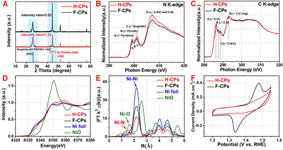 该研究组发现将三聚氰胺均匀喷涂在镍片表面,在氩气氛围下控制加热温度,使得三聚氰胺转变为氮掺杂的碳层。伴随温度的升高,镍不断从镍金属片中迁移出来并被氮掺杂的碳层捕获。由于氮掺杂的碳层中存在部分镍颗粒,在1273K高温下,氮掺杂的碳层表面形成大量含有孤立镍位点的氮掺杂碳管,进而形成了这种碳管/碳层/碳管的分级结构。降至室温后,类纸状的催化剂薄膜无需任何处理便可以自动从镍片表面脱离,并且对镍片进行简单的抛光处理后即可重复使用。扫描电镜表明样品具有很好的碳管/碳层/碳管的分级结构,透射电镜和球差原子显微镜表明表面氮掺杂碳管中含有大量孤立的镍单原子位点。催化剂薄膜中部的氮掺杂碳层的存在赋予了催化剂一定的刚性和柔性,可以承受一定力度的弯折,表面的碳管进一步增大了催化剂的表面积并且赋予了特殊的表面浸润性。该研究组通过控制镍片的大小即可以在实验室成功制备出各种形状乃至50平方厘米的催化剂薄膜,该方法通过扩大镍片面积即可很容易地实现大规模制备。由于部分镍颗粒被多层石墨烯很好的包裹住,酸溶处理并不能完全除去其中的镍颗粒。但是,通过简单的酸溶处理即可除去表面裸露的镍颗粒,处理后的类纸状的催化剂薄膜可以作为自支撑电极直接被用于CO2电还原催化中。