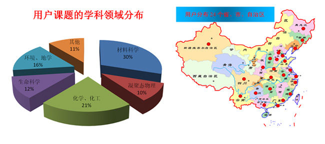 图1 本次开放运行用户课题的学科分布示意图(左)及用户分布示意图(右)。