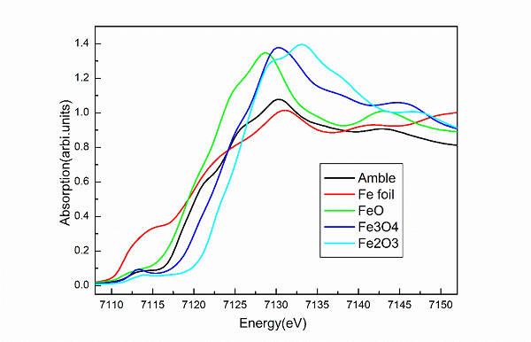 研究人员通过BSRFXFI获得了尾椎化石出露断面的微量元素分布图,其中铁、锰、钛、锗等元素的分布与化石的形态高度吻合,蕴含着丰富的埋藏学信息。铁元素近边吸收谱分析表明,其中80%以上的铁原子为二价,这应该是血红蛋白和铁蛋白的遗迹。