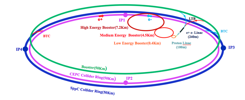 如果CEPC发现了新物理的迹象,可以在同一隧道中建设质子对撞机,直接寻找新物理 è 50年的发展计划,50年的世界领先