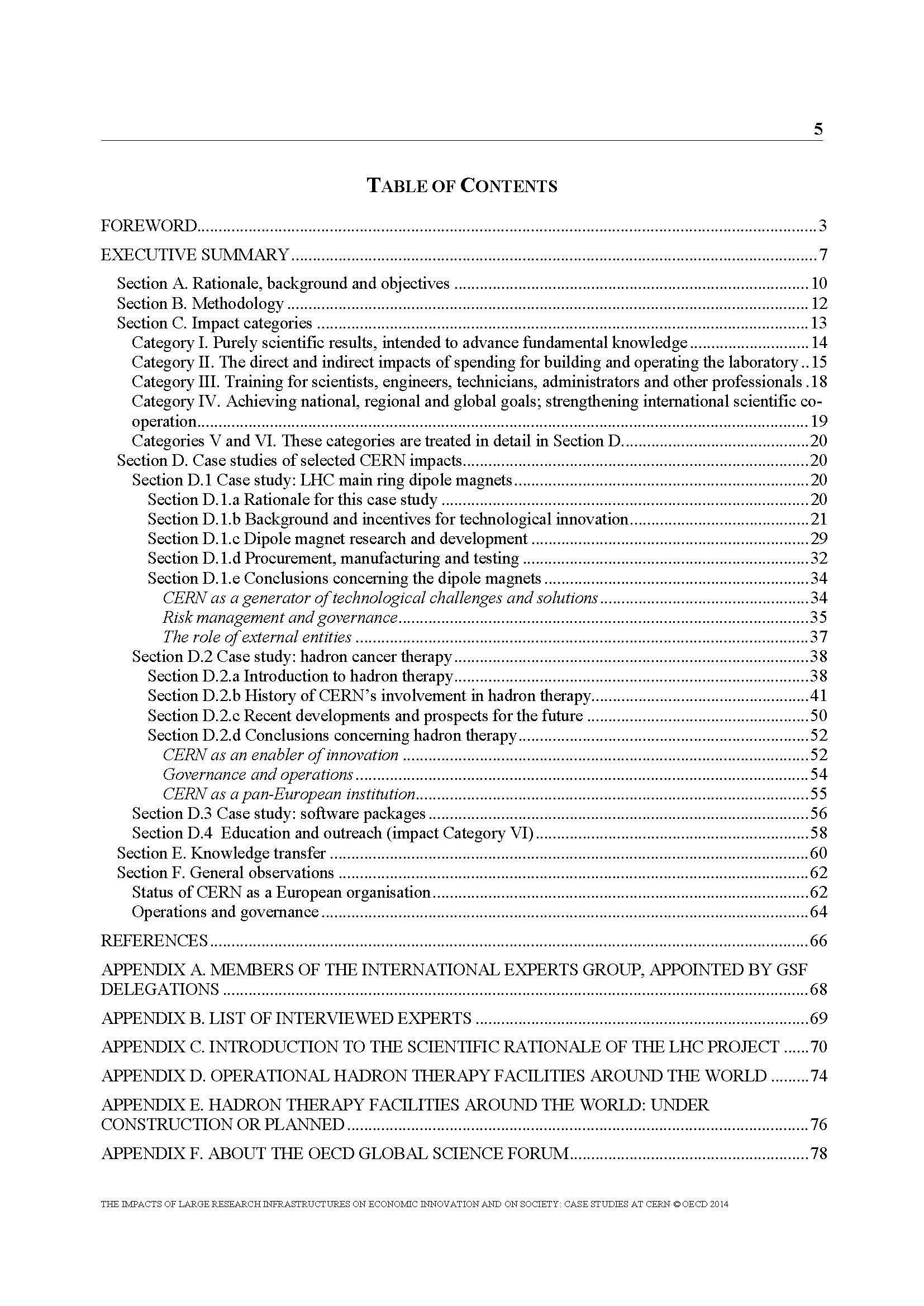 经济合作与发展组织(OECD)全球科学论坛(GSF)的报告“大型研究设施对经济创新和社会影响的研究报告-CERN案例研究(Report on the Impacts of Large Research Infrastructures on Economic Innovation and on Society - CASE STUDIES AT CERN)”2014年6月由OECD科技政策委员会(Committee for Scientific and Technological Policy)批准。