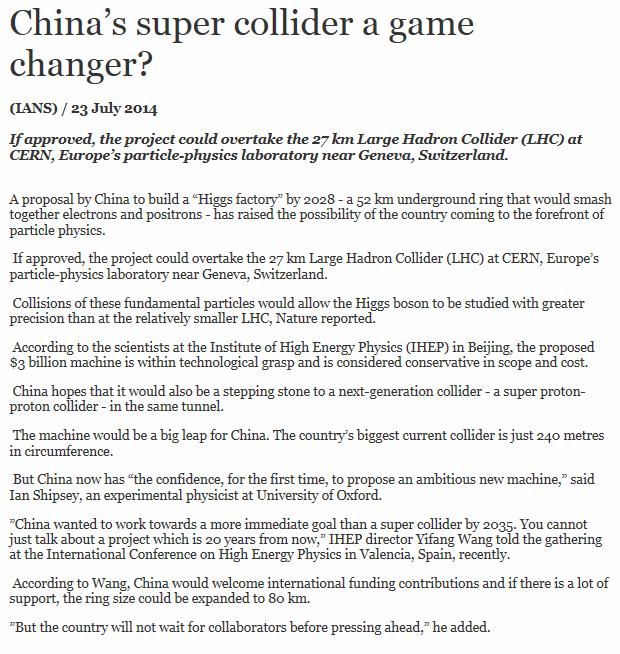If approved, the project could overtake the 27 km Large Hadron Collider (LHC) at CERN, Europe’s particle-physics laboratory near Geneva, Switzerland.