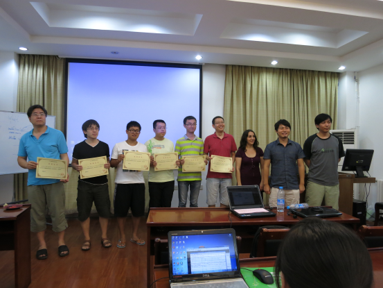 由于参加培训的学员较多,为了取得良好的效果,在最后两天里,四十多名学员分组进行上机实习。每组组员都积极参加讨论、按时完成作业,并在最后一天选出代表作最后的答辩。优胜者被授予荣誉证书。