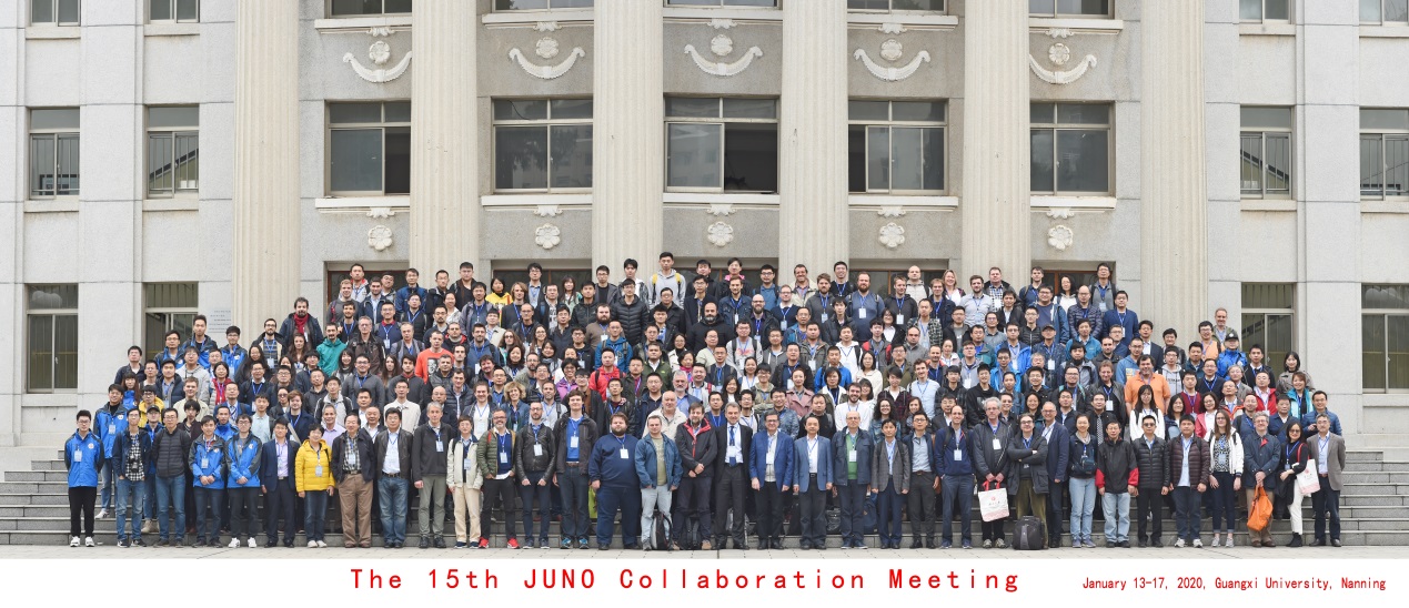 113日至17日,江门中微子实验第15届国际合作组会在广西大学举行,参加本次会议的有来自中国、比利时、巴西、智利、克罗地亚、捷克、法国、德国、意大利、俄罗斯、美国、泰国、中国台湾等13个国家和地区的50多个高校与科研院所270多位科学家。会议由广西大学承办。