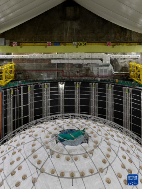 10月9日拍摄的建设中的江门中微子实验中心探测器。新华社记者 金立旺 摄