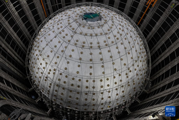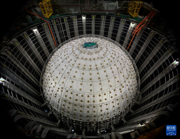 据中国科学院高能物理所消息,江门中微子实验建设目前已经进入收官阶段,最内层的有机玻璃球已合拢,外层的不锈钢网架和光电倍增管也在有序合拢中,预计11月底将完成全部安装任务。江门中微子实验以测量中微子质量顺序为首要科学目标,并进行其他多项重大前沿研究,建成后将成为国际中微子研究中心之一。