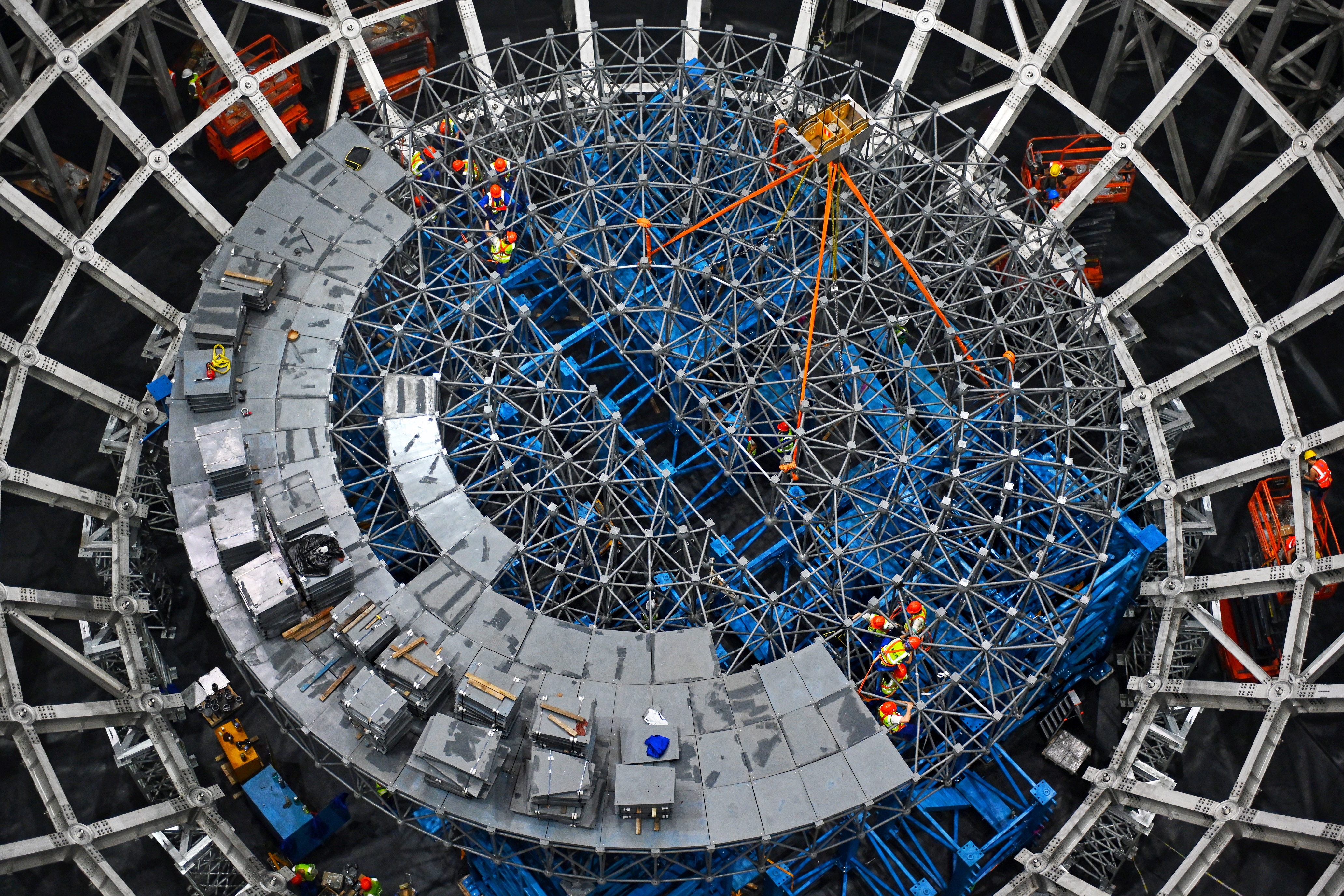有机玻璃球安装平台正在顶升(中间部分)-2022.5月