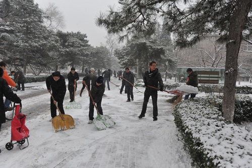 12月14日,北京市普降瑞雪,高能所园区银装素裹、分外妖娆,但是各条主干道也被积雪覆盖,给所内职工家属的出行带来了很大不变。14号早上,不等所党办发出通知,各党支部就已经有党员职工冒着严寒清扫所园区内的积雪。经过一个多小时的努力,高能所园区主要干道的积雪已经被铲除,方便了大家出行。