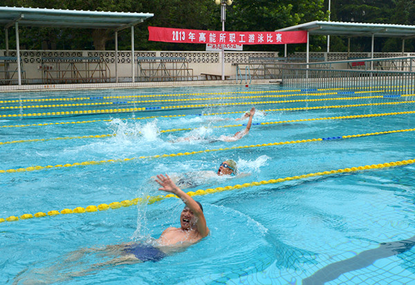 为促进全民健身运动的开展,增强职工体质,活跃职工业余文化生活, 8月16日上午,高能所成功举办了2013年职工游泳比赛。比赛按照年龄分为男子、女子甲乙丙丁8个组别,设置了仰泳、自由泳、蝶泳、蛙泳和集体接力等项目,来自全所各单位100多人报名参赛。