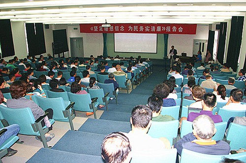 9月17日下午,高能所党委召开党的群众路线教育实践活动专题报告会,邀请中国科学院党组副书记方新作《坚定理想信念 为民务实清廉》专题报告。高能所党委书记王焕玉主持报告会。高能所全体党员参加会议,潘卫民、姜晓明、王九庆、奚基伟、陈元柏出席会议。