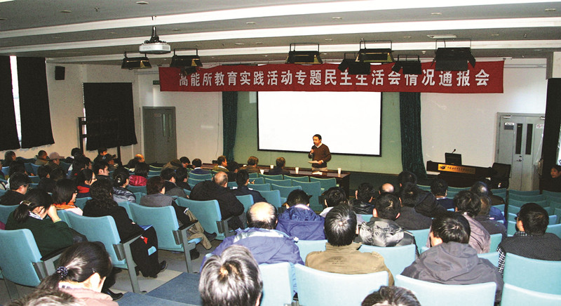 12月5日,高能所党委举办党的群众路线教育实践活动专题民主生活会情况通报会。会议由所长王贻芳主持,所党委书记、副所长王焕玉作情况通报, 所领导王九庆、潘卫民、罗小安、陈元柏出席会议。北京分院协作三片督导组成员、北京分院副院长欧龙新,北京分院综合处副处长周亚东列席会议。