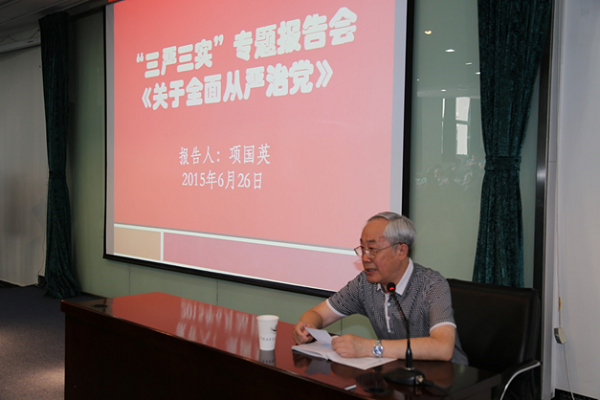 为了把“三严三实”专题教育活动引向深入,6月26日,高能所党委组织了“三严三实”专题报告会,邀请中科院京区党委原常务副书记项国英讲党课。所党委书记潘卫民主持,近200名党员聆听了党课。