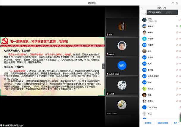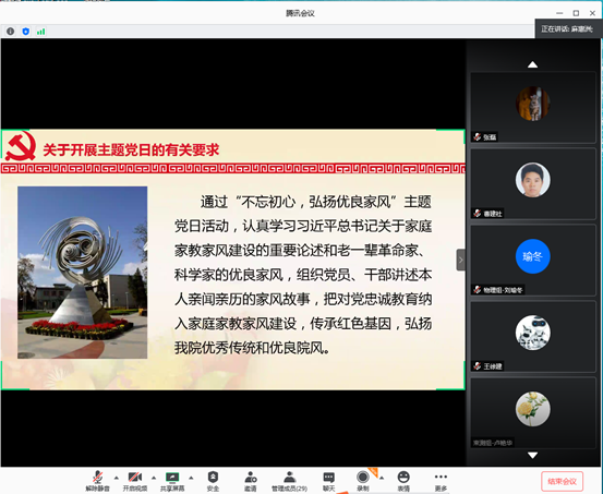为了热烈庆祝中国共产党成立99周年,深入学习贯彻习近平总书记在中央和国家机关党的建设工作会议上的重要讲话精神,根据中央和国家机关工委的工作部署,按照中科院党组和所党委的要求,加速器二支部于7月28日组织开展了“不忘初心,弘扬优良家风”线上主题党日活动,会议由支部书记赵颖主持。