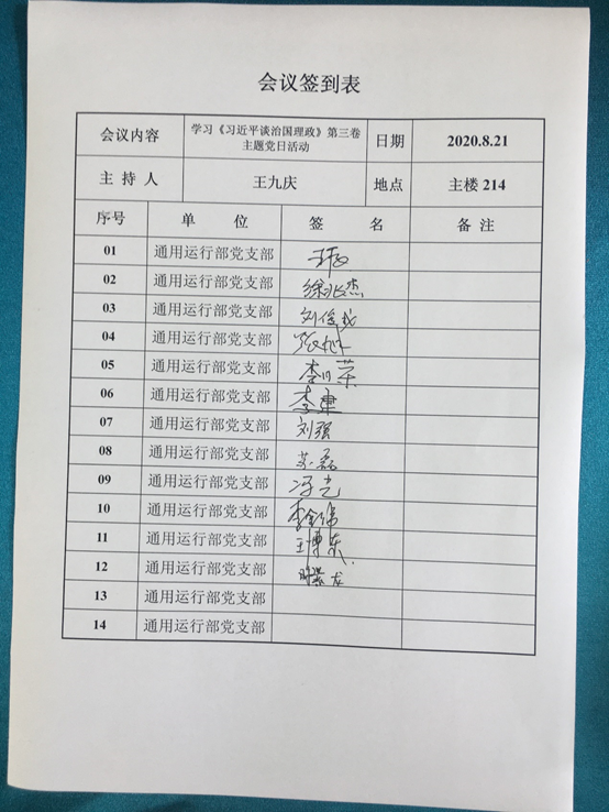 通用运行党支部会议签到表