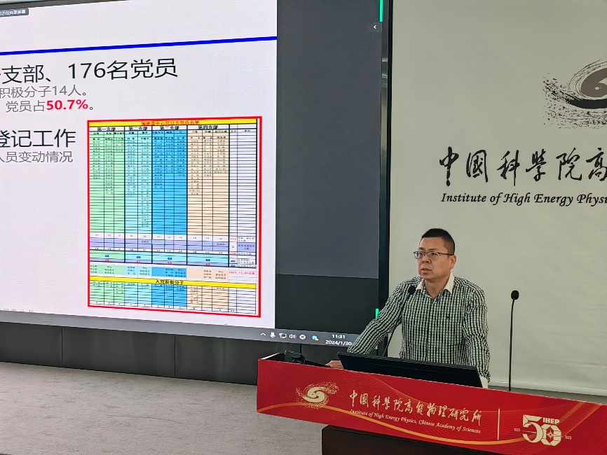 随后,由岳军会进行了加速器中心党总支年度工作总结,从组织建设、从严治党、宣传工作、围绕中心等九个方面对党总支在2023年度的工作进行了总结。2023年是加速器中心硕果累累的一年,其中也涌现出了一批坚守岗位、成绩突出的党员团队及个人。2024年度党总支也将继续服务中心、围绕大局,促进党建与科研的有效融合。