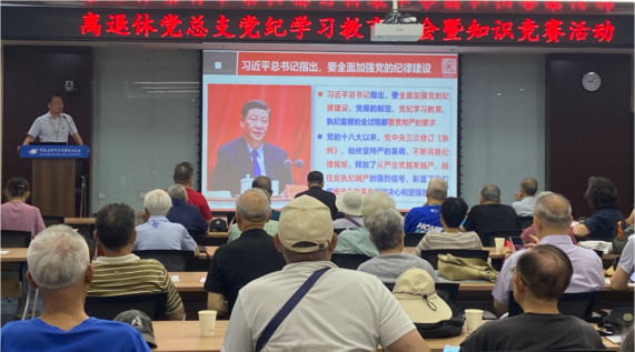 为深入学习贯彻习近平总书记关于党纪学习教育的重要讲话和重要指示精神,离退休党总支按照所党委部署要求,于2024年7月18日举办党纪学习教育大会暨知识竞赛答题活动。总支特别邀请了所纪委书记李伟出席并作专题党课报告,会议由离退休党总支书记邓春勤主持,离退休总支委员、各支部党小组长以上骨干及党员代表、离退办全体在职党员计60余人参加。