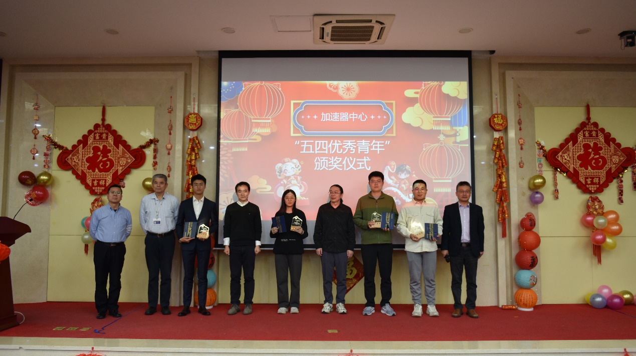 会上还进行了2024年度加速器中心“五四优秀青年”颁奖仪式,党总支书记岳军会介绍了“五四优秀青年”的基本情况和历史,宣布了获奖者名单并介绍了获奖人员情况,与会嘉宾为获奖者颁发了奖杯和荣誉证书。