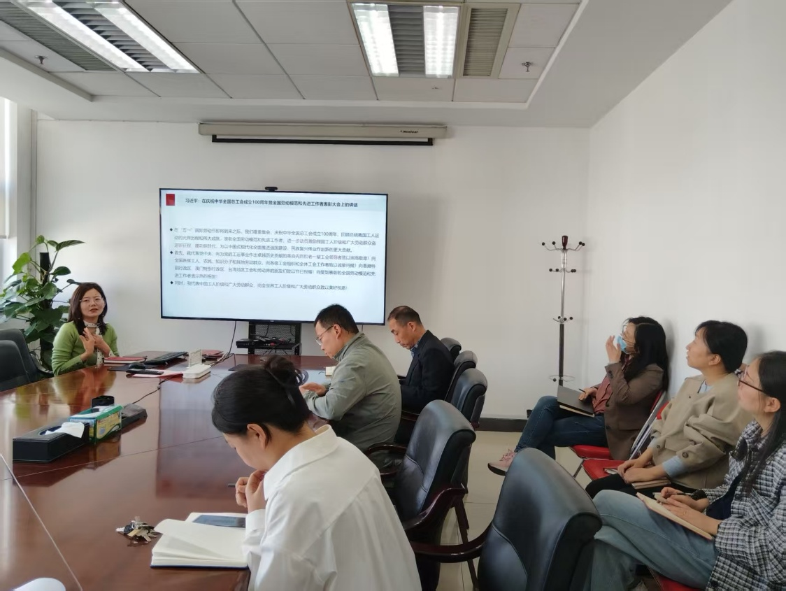 会议首先组织了“第一议题”学习,王欢领学了习近平总书记在庆祝中华全国总工会成立100周年暨全国劳动模范和先进工作者表彰大会上的讲话精神。