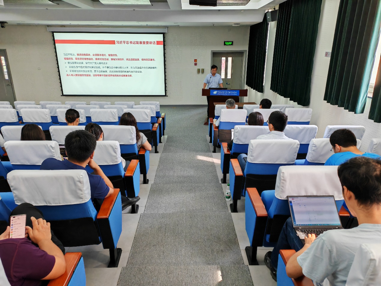 为深入贯彻落实所党委的工作部署,实验物理中心党总支于8月18日召开全体党员大会,专题学习习近平总书记系列重要讲话精神,大会由总支书记王铮主持。