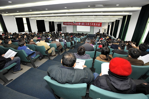 最后,陈和生做大会总结指出职代会是所领导与全所职工沟通交流,是职工了解所情、对研究所工作提出意见与建议的重要渠道之一,只有沟通渠道通畅才能改进工作,把工作做的更好。他对于与会代表提出的意见与建议表示肯定,对普遍关注的几个热点问题:外聘人员待遇、散裂中子源人才队伍建设、职员职业生涯发展、停车收费等发表了个人意见。他希望各单位开展各项工作时要多规划,解决问题时要拓展思路,同时希望全所职工多了解研究所的发展以及面临的问题,积极献言献策,共同迎接新的挑战。