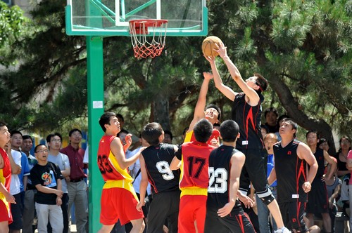 比赛在午间举行,赛场上队员们斗志昂扬,精彩场面层出不穷,发球、接球、拦网、吊球----排球场上队员们配合默契,精彩不断,在处于劣势时,队友之间相互鼓舞,没有一句抱怨和指责,形成了较强的集体凝聚力。带球前进、封堵抢断、突破上篮-----篮球场上队员们拼抢激烈,招式精妙,比赛过程扣人心弦,永不服输的体育精神在他们(她们)身上体现的淋漓尽致,他们(她们)的精彩表现引来场下观众的阵阵喝彩。在一个多月的比赛时间里,每当午时,许多部门的党、政、工领导亲临现场为队员们鼓劲加油!特别是决赛中场休息时,实验中心的7名篮球宝贝舞感十足,激情投入,为双方运动员加油,给赛场的紧张气氛带来些许放松,赛场上下呈现出团结、协作、拼搏的精神风貌。