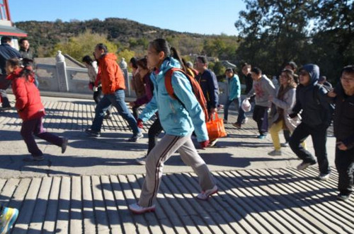 实验物理中心一直重视职工业余文化生活,在全年各个季节都积极组织相应的生动有益的文体活动。八大处登山比赛就是其中之一,该比赛迄今已举办两届,每次都吸引了众多人员参加。本次比赛定于深秋,是日清早,沐浴着深秋的暖阳,中心所有参赛队员准时在八大处集结,大家精神饱满,跃跃欲试。随着中心副主任、工会主席王铮的一声号令,各支队伍同时出发。在比赛中,队员们争先恐后,体现出勇于争先的竞争意识和拼搏意识,同时,他们在比赛中相互帮助,携手共进,充分展现了良好的团队精神和协作精神。赛段各处荡漾着大家愉悦的笑声,飘扬着中心各色彩旗。经过将近三十分钟的紧张激烈的角逐,电子学组、软件组、探测器一组分获第一、二、三名。